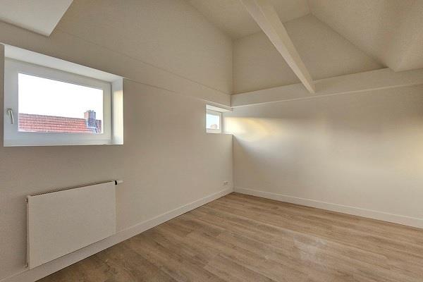 De woonkamer met open keuken bevindt zich aan de achterzijde van het huis en biedt toegang tot het compacte dakterras. De keuken is volledig uitgerust met een 4-pits inductiekookplaat, combi-oven/magnetron, koelkast/vriezer en vaatwasser.