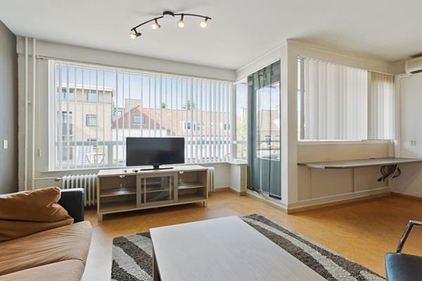 De ruime woonkamer is voorzien van een zeilvloer, strak afgewerkte wanden en airconditioning. Vanuit de woonkamer is het overdekte balkon bereikbaar, waar u kunt genieten van een leuk uitzicht op het Sint Trudoplein.