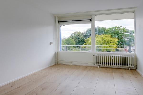 De lichte woonkamer bevindt zich aan de achterzijde van de woning en is voorzien van grote raampartijen die zorgen voor veel daglicht. Vanuit de woonkamer is er toegang tot het balkon, gelegen op het zuidoosten – een heerlijke plek om van de zon te genieten. Naast de woonkamer bevinden zich nog twee slaapkamers, die geschikt zijn als slaap-, werk- of logeerkamer.