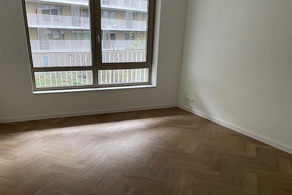 De woonkamer staat in open verbinding met de keuken, beschikt over grote raampartijen en geeft toegang tot het balkon. Intercom met beeldtelefoon aanwezig.
