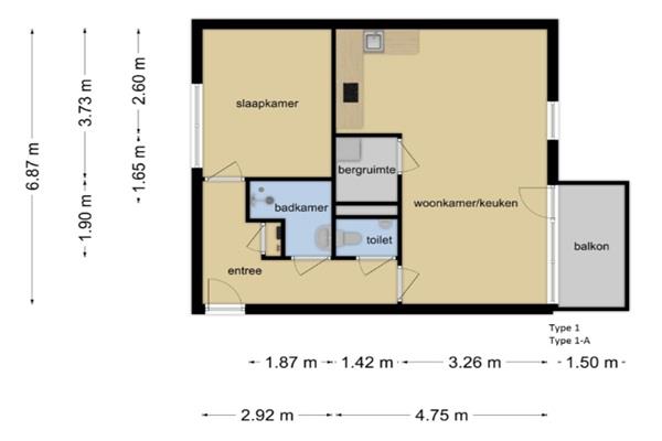 Bij binnenkomst heeft u toegang tot het toilet, meterkast, één slaapkamer en een bergruimte. De badkamer is voorzien van een inloopdouche met glazen douchewand en een stijlvol badmeubel. De lichte woonkamer beschikt over een moderne, rechte open keuken en een deur naar het balkon.