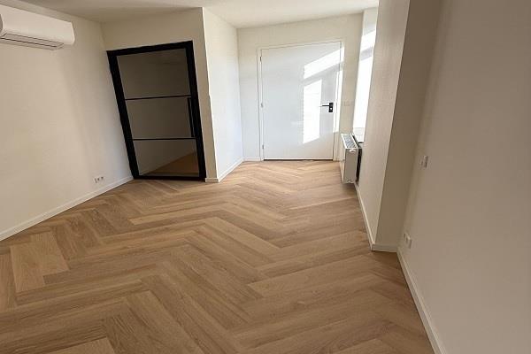 U komt binnen in de ruime hal alwaar u naar de woonkamer of naar de tussenverdieping met de trap kunt gaan. We lopen vanuit de gang de strakke ruime woonkamer met airco en een open keuken in alwaar de warme visgraat vloer je tegenmoet lacht.