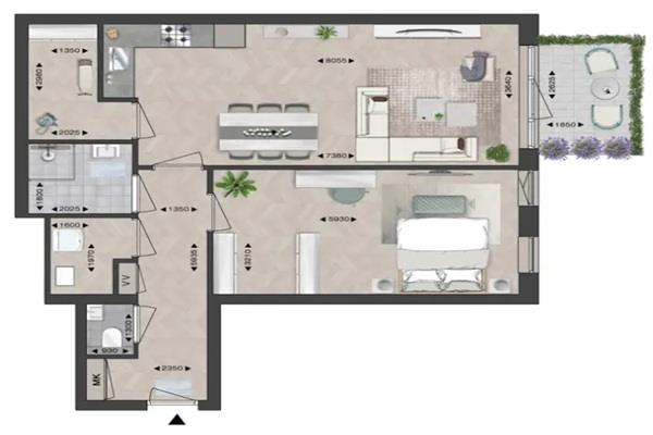 De woning is voorzien van een hoogwaardige PVC-vloer en wordt met wit gesausde wanden opgeleverd. Naast het woongedeelte heb je ook jouw eigen balkon van 5 m2 groot, gunstig gelegen op het zuidwesten.