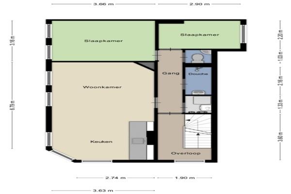 Het appartement beschikt over een lichte woonkamer met grote raampartijen en een moderne open keuken, voorzien van diverse inbouwapparatuur. Aan de rustige achterzijde bevinden zich twee slaapkamers. Centraal in de woning zijn de nette badkamer en een separaat toilet gesitueerd.