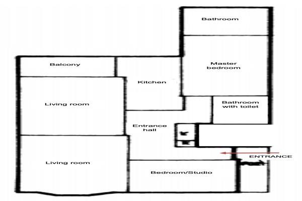 Dit appartement op de eerste verdieping, bereikbaar via een typische portiek, beschikt over: