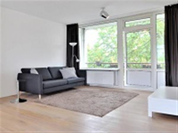 Lichte doorzonwoonkamer met toegang tot het zonnige zuidbalkon en uitzicht op het groen.