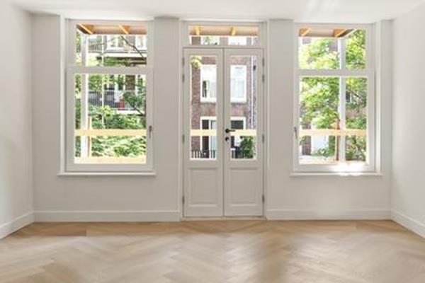 Een gedeelde trap leidt één vlucht omhoog naar de eerste verdieping van de Van Alphenstraat At