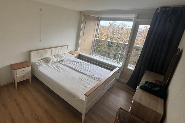 Entree/hal met toilet, videofooninstallatie en de meterkast. Woonkamer met zonwering en toegang tot het balkon aan de voorzijde. Eenvoudige dichte keuken met alle gemakken, toegang tot het balkon aan de achterzijde met een bergkast. De hoofdslaapkamer aan de voorzijde geeft eveneens toegang tot het balkon, een 2e slaapkamer aan de achterzijde en een 3e slaapkamer aan de voorzijde met eigen balkon. Badkamer met douche, wasmachine en wastafel.