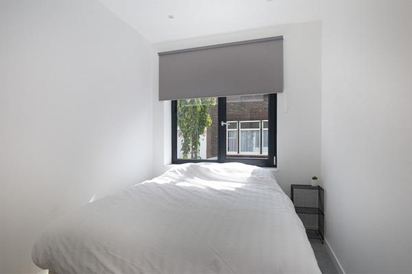 Het speelse appartement heeft op de begane grond de slaapkamer die is voorzien van een bed ( 1,40 meter formaat) en kunststof kozijnen met draai-kiep functie voor (veilige) ventilatie. Onder de trap is een ruimte beschikbaar voor het bergen van kleding en is de wasmachine geplaatst.