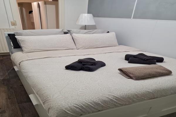 Het appartement bestaat uit twee verdiepingen (eerste verdieping en tweede - en tevens laatste - verdieping), met een eigen entree met garderobe en meterkast. De eerste verdieping is bereikbaar via de vaste trap. De hal biedt toegang tot een ruime woonkamer, voorzien van een 4-persoons tafel met 4 stoelen, 2 slaapbanken, de tv en een sierhaard. Deze ruimte is bijzonder licht dankzij zes grote originele schuiframen. Op dezelfde verdieping bevinden zich: een gezellige keuken, volledig uitgerust met een moderne koelkast, koelkast, vaatwasser, elektrische oven, magnetron, een 4-pits gaskookplaat met afzuigkap en waterkoker, een bartafel voor 4 personen met 4 krukken; een wasruimte met wasmachine en droger met de beste en meest zuinige energieklasse die momenteel op de markt verkrijgbaar is; en een mooi toilet. Op de tweede verdieping, bereikbaar via de vaste trap, bevindt zich een tweepersoonsslaapkamer met een kast en twee ladekasten, met directe toegang tot een eigen balkon. Dit balkon is voorzien van twee rotan banken en planten. Het balkon biedt veel privacy en is een heerlijke plek om buiten te zitten.