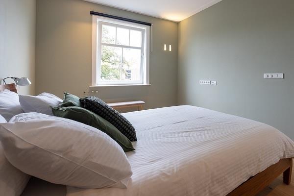 Op de tweede verdieping bevindt zich tevens de tweede slaapkamer, gelegen aan de voorzijde van het appartement. Deze multifunctionele ruimte is voorzien van een opklapbed (Murphy bed) en is daardoor ideaal te gebruiken als logeerkamer, thuiskantoor of extra slaapkamer.