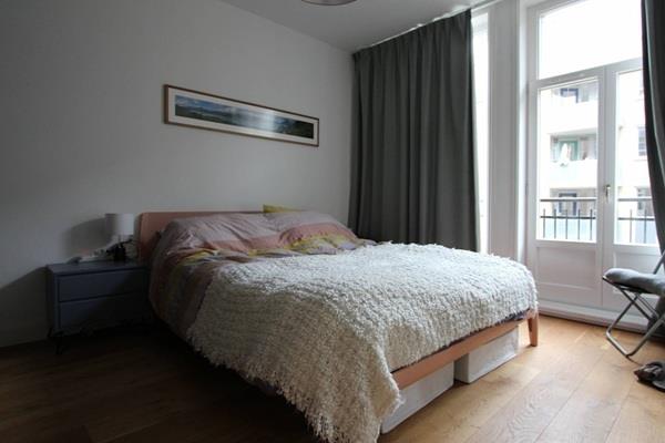 1e verdieping. Het gehele appartement is voorzien van een mooie houten vloer en een hal met toegang tot alle ruimtes. Aan de voorzijde bevindt zich de ruime hoofdslaapkamer met tweepersoonsbed, Frans balkon en kledingkast. De tweede kamer is perfect voor een thuiskantoor. In het midden van het appartement bevindt zich de luxe, ruime badkamer met ligbad, inloopdouche met regendouchekop, wastafel en handdoekradiator, een apart toilet en aan de achterzijde de lichte woonkamer met volledig uitgeruste open keuken. Vanuit de woonkamer heeft u toegang tot het diepe en zonnige balkon.
