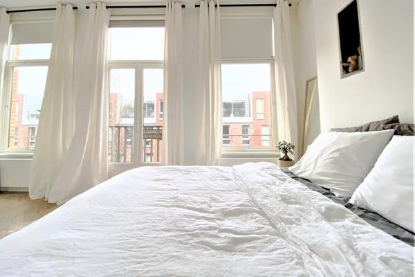 Entree op de derde verdieping; hal, wc, woonkamer met moderne open keuken voorzien van alle inbouwapparatuur en gaaf (kook)eiland, vanuit de woonkamer en keuken heb je toegang tot het balkon (ca. 4m2) op het zuiden, aan de voorzijde bevindt zich de eerste royale slaapkamer met 2 persoonsbed en voldoende (op maat gemaakte) (kleding)kastruimte en een stijlvolle badkamer ensuite voorzien van een inloopdouche en wastafel. Vanuit de hal is er een interne trap naar de tweede slaap-/studeerkamer gelegen op de vierde verdieping. Er is hier tevens een wasmachine aanwezig