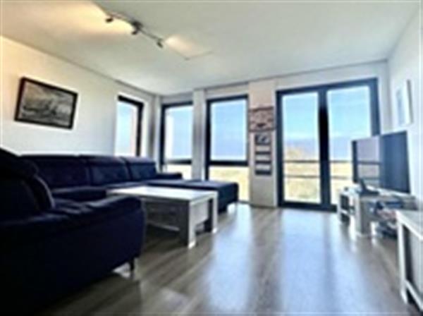 Via de lift of trap bereikt u het appartement op de vierde verdieping. De binnenkomst in de hal biedt toegang tot alle ruimten. In de woonkamer treft u een zeer ruim en licht woonoppervlak met grote ramen aan drie zijden, waardoor het daglicht rijkelijk binnenstroomt en u vanuit vrijwel elke hoek kunt genieten van het panoramische uitzicht.