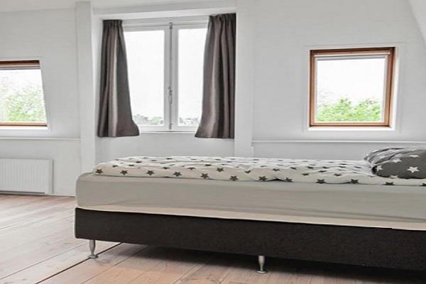 De hoofdslaapkamer bevindt zich aan de voorzijde van het appartement en is voorzien van een comfortabel tweepersoonsbed en een grote kledingkast.