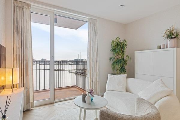 De lichte woonkamer beschikt over grote raampartijen en biedt een prachtig uitzicht over het water. De ruimte is sfeervol en modern ingericht en sluit aan op de open keuken. De slaapkamer is voorzien van een comfortabel tweepersoonsbed en voldoende opbergruimte.