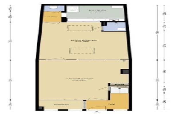 Achter de woonkamer zit een eveneens grote kamer van ca. 32m². In deze kamer bevindt zich ook de badkamer die voorzien is van een douche en een wastafel.