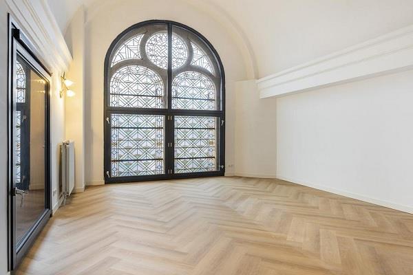 Via het bellentableau bereikt u het indrukwekkende schip van de kerk. De monumentale centrale hal met haar hoogte, pilaren en lichtinval is een beleving op zich. Vanuit hier heb je toegang tot het appartement, de centrale fietsenberging en de doorgang naar de steeg.