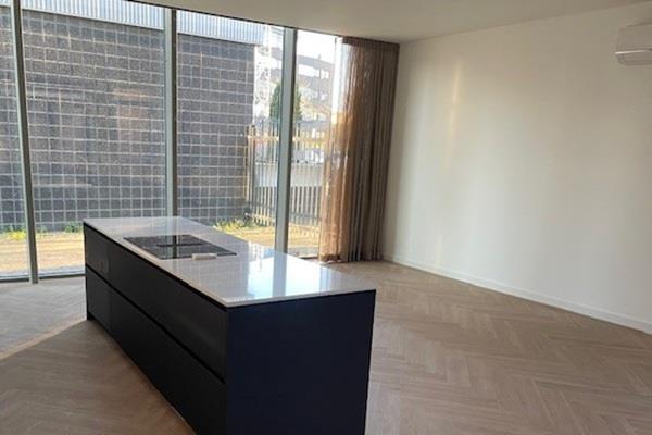 De moderne keuken is uitgerust met greeploze keukenkastjes, vaatwasser, kookplaat, koelkast, combi-oven en kookstel met ingebouwde afzuiging.