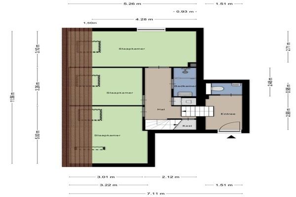 Bij binnenkomst betreedt u de gezamenlijke hal op de begane grond. Vanuit hier heeft u toegang tot de trapopgang naar de eerste verdieping, waar het appartement zich aan de linkerzijde van het complex bevindt.