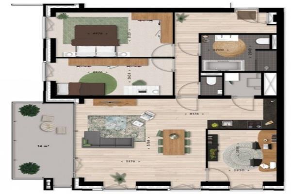 Het appartement heeft een groot balkon die via de lichte woonkamer te betreden is.