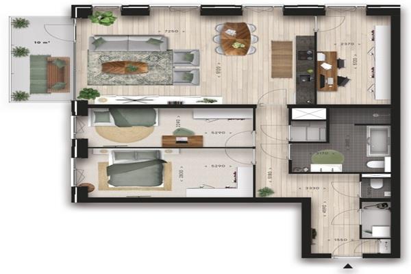 Stap binnen in luxe: de keuken is voorzien van hoogwaardige apparatuur zoals een koel/vriescombinatie, oven met magnetronfunctie, inductie kookplaat en een vaatwasser. De moderne badkamer biedt een oase van ontspanning met een inloopdouche, ligbad, dubbele wastafel met spiegel en zwevend toilet. Een tweede toilet met fontein bevindt zich in een aparte ruimte. Het ruime balkon is toegankelijk vanuit de riante woonkamer, en het appartement beschikt over een interne berging en een derde slaapkamer/werkkamer.