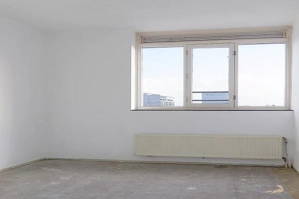 Via de interne trap bereik je de 13e verdieping, waar zich het woongedeelte bevindt. De royale woonkamer van circa 54 m² is heerlijk licht dankzij de grote raampartijen en biedt volop ruimte voor een comfortabele zithoek en eethoek. Aangrenzend ligt de ruime keuken van circa 22 m², voorzien van diverse inbouwapparatuur en voldoende kastruimte. Ook op deze verdieping is een extra berging aanwezig, ideaal voor voorraad of huishoudelijke spullen.