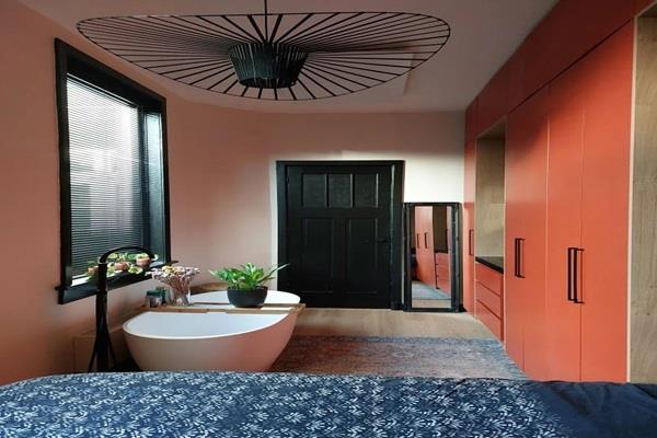 Entree, hal, voorraadkast, badkamer met douche, toilet en fonteintje. Er is een grote lichte woonkamer voorzien van vloerverwarming met een moderne open keuken. Er is diverse apparatuur aanwezig zoals een kokend waterkraan, gasfornuis met wok brander, afzuigkap, grote oven, vaatwasser, grote koelkast met vriezer en wasmachine. Aangrenzend bevindt zich een ruime slaapkamer, voorzien van een tweepersoonsbed, een grote hoeveelheid kastruimte, wastafel en een heerlijk vrijstaand bad. Er is een ruime zonnige achtertuin aanwezig gelegen op het zuiden, met een loungeset en meerdere andere zitjes zodat zowel de zon als schaduw opgezocht kan worden.