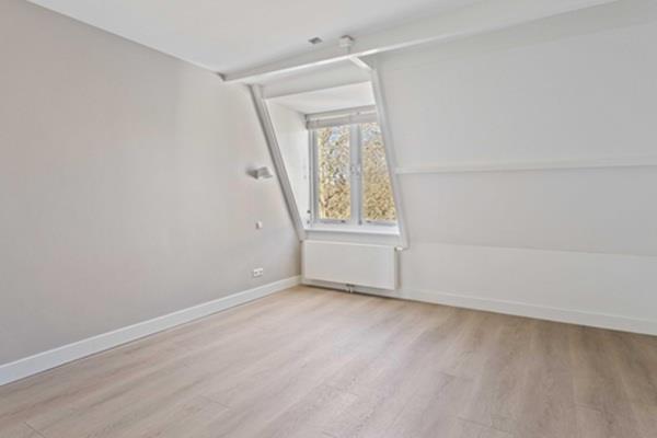 Het eetgedeelte aan de achterzijde beschikt over grote openslaande deuren naar een Frans balkon. Dankzij de vele raampartijen is er een prachtige lichtinval en een vrij uitzicht op het groen.