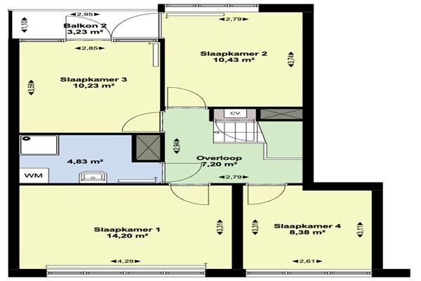 Via het gemeenschappelijk trappenhuis naar de vierde verdieping: entree, woonkamer met een open keuken en een balkon gelegen op het zuiden, interne trap naar de vijfde verdieping.