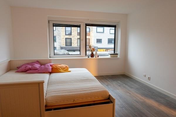 Op de tweede verdieping treft u op de overloop de wasmachine en een slaapkamer over de gehele lengte van het gebouw, met een aparte inloopkast. Vanuit de overloop is toegang tot het ruime dakterras.