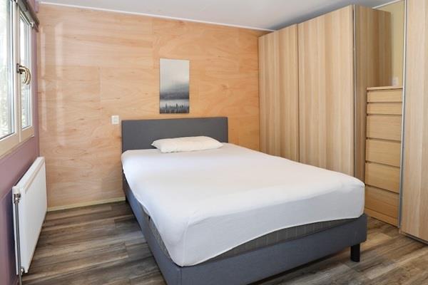 Ouderslaapkamer met vasten kastenwand en tweede kamer welke nu is gebruik is als werkplek.