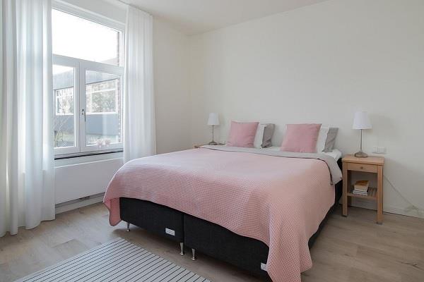 Op de eerste verdieping zijn 2 slaapkamers (14m² en 16m²) gesitueerd. Een slaapkamer ligt aan de voorzijde en de andere aan de achterzijde van de woning. Slaapkamers beiden voorzien van laminaat vloeren en spots in het plafond. De badkamer (6m²) is voorzien van een inloopdouche, 2e toilet en dubbele wastafel.