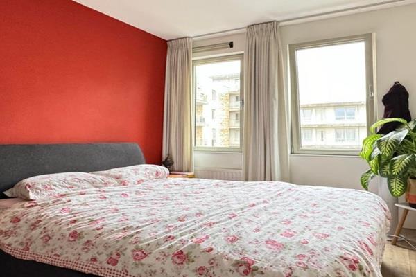 Woongedeelte, met een lichte ruime woonkamer en een open keuken en toegang tot de zonnige privé daktuin (20m2) stadstuin en de grote, afgesloten gedeelde binnentuin.
