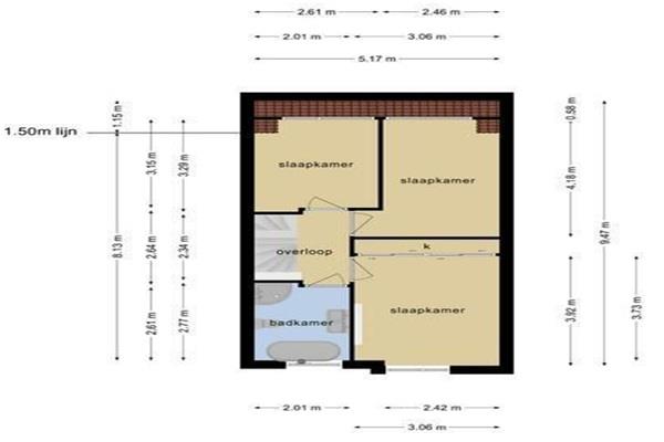 Tweede verdieping met ruime overloop, wasmachine aansluiting en ruime slaapkamer en (dak)terras gelegen aan de voorkan
