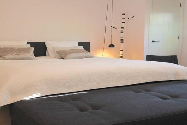 Ruime slaapkamer met badkamer en suite. Via stalen openslaande deuren is de aangename buitenruimte bereikbaar. De gehele begane grond is voorzien van vloerverwarming.