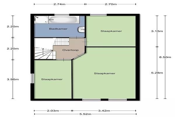 Via de vaste trap bereik je de overloop. Hier vind je drie slaapkamers en de badkamer. Vanuit de overloop kun je ook met een vaste trap naar de zolder.