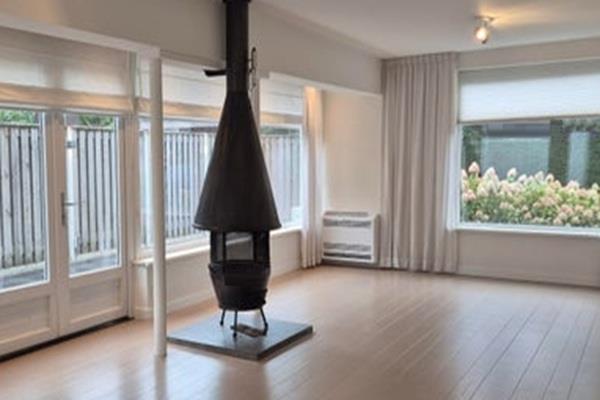 Entree in de hal met trapkast, toilet en toegang tot de zeer ruime en lichte woonkamer. De woonkamer is voorzien van een open haard en een parketvloer.