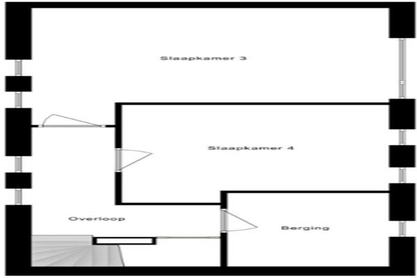Overloop met toegang tot twee slaapkamers en de berging/technische ruimte.