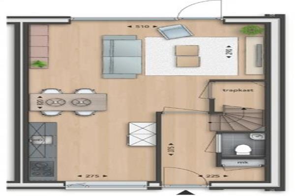 Via de entree kom je binnen in de hal met meterkast, toiletruimte en de trap naar boven. De ruime woonkamer met trapkast biedt toegang tot de zonnige tuin. Aan de voorzijde van de woning bevindt zich de luxe witte open keuken met een natuurstenen werkblad. Deze is voorzien van inbouwapparatuur zoals een koelkast, vriezer, RVS afzuigkap, inductiekookplaat, combimagnetron en vaatwasser.
