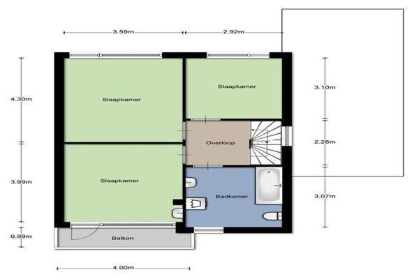 Vanuit de hal is middels een vaste trapopgang de eerste verdieping te bereiken. Hier bevinden zich 3 slaapkamers en een badkamer. Slaapkamer 1 van ca. 14 m² bevindt zich aan de voorkant van het huis en geeft toegang tot een balkon. Slaapkamer 2 van ca. 15 m² en slaapkamer 3 van ca. 9 m² bevinden zich aan de achterzijde van de woning. De badkamer is betegeld en voorzien van ligbad, grote douchecabine en een wastafel met meubel.