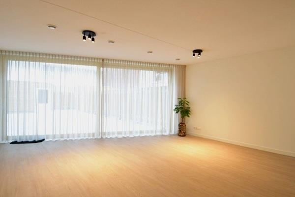 Vanuit de woonkamer toegang naar de ruime tuin van ca. 70m² met berging en achterom.