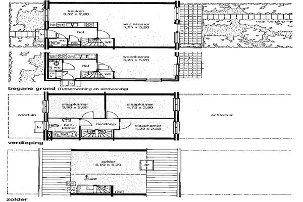 Elke woning heeft een voortuin en een achtertuin met praktische berging voor fietsen of gereedschap. Het biedt zowel buitenruimte als extra opslagmogelijkheden.
