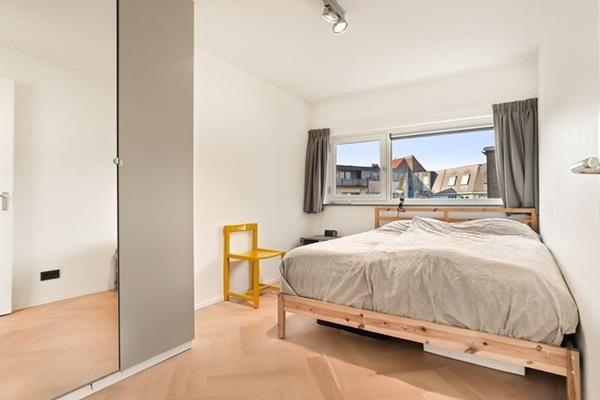 Eerste verdieping: woonkamer met prachtige houten vloer (vloerverwarming), inbouwkast en ruimte voor een werkplek. Balkon over de gehele breedte op het westen (middag- & avondzon), trap naar;