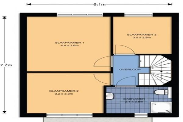 De overloop geeft je toegang tot de nette badkamer met ligbad, wastafel en 2e toilet, alsmede drie ruime slaapkamers.