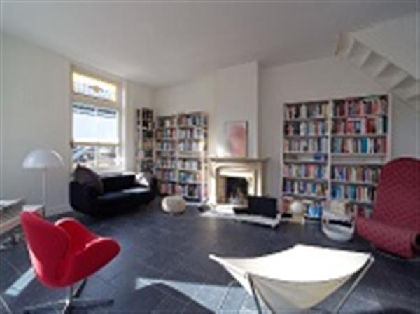 Een zeer riante woonkamer met open haard, een open keuken met alle benodigde apparatuur en een open trap naar de eerste verdieping. Op de eerste verdieping bevinden zich twee slaapkamers, een luxe badkamer, een tweede toilet met wastafel en een dakterras van 15 m².