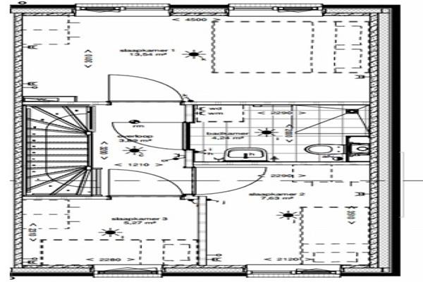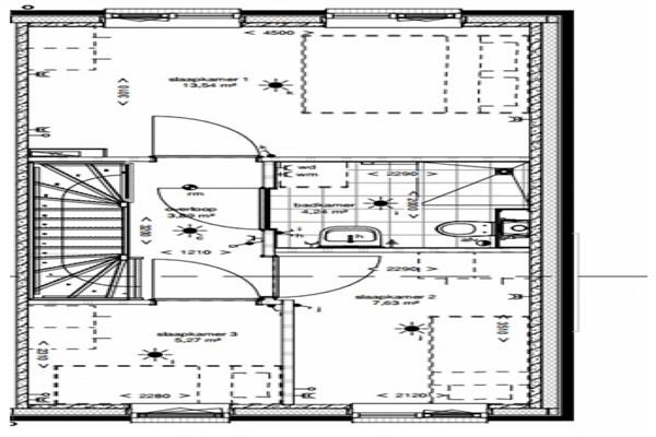 Overloop, drie slaapkamers, badkamer voorzien van een douche, wastafel, tweede toilet en wasmachine aansluiting.