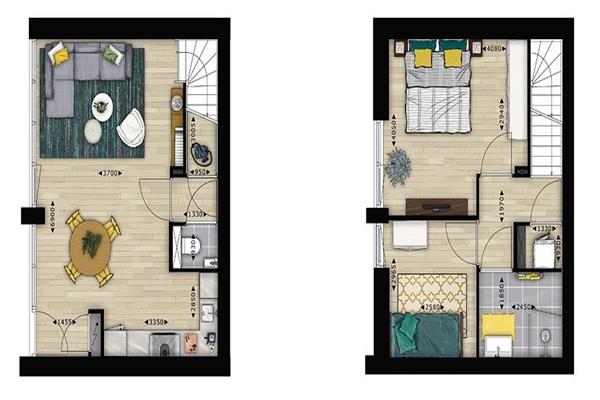 Kom binnen in een lichte living met grote glazen pui, moderne open keuken voorzien van inbouwapparatuur zoals 4 pits kooktoestel, koelkast, combi magnetron en vaatwasser. Daarnaast is er een apart toilet met fontein en kleine berging aanwezig. Via de vaste trap bereik je de 1e verdieping waar zich een compleet afgewerkte badkamer met inloopdouche, 2 slaapkamers en de stookruimte bevindt.