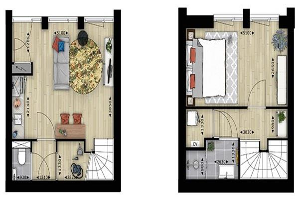 Compacte stijlvolle living met grote glazen pui, moderne open keuken voorzien van inbouwapparatuur zoals 4 pits kooktoestel, koelkast, combi magnetron en vaatwasser. Daarnaast is er een apart toilet met fontein en kleine berging aanwezig. Via de vaste trap bereik je de 1e verdieping waar zich een compleet afgewerkte badkamer met inloopdouche, een royale slaapkamer en de stookruimte bevindt.