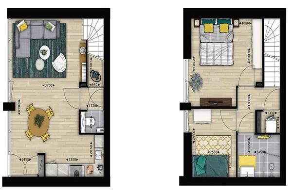 Kom binnen in een lichte living met grote glazen pui, moderne open keuken voorzien van inbouwapparatuur zoals 4 pits kooktoestel, koelkast, combi magnetron en vaatwasser. Daarnaast is er een apart toilet met fontein en kleine berging aanwezig. Via de vaste trap bereik je de 1e verdieping waar zich een compleet afgewerkte badkamer met inloopdouche, 2 slaapkamers en de stookruimte bevindt.